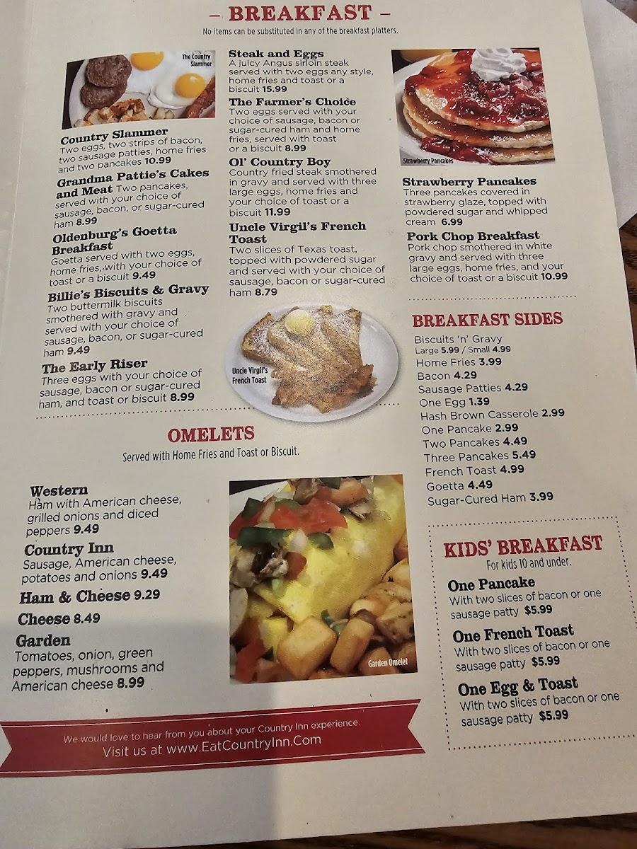 Patrons rave about the impeccable service and delicious, homemade flavors, from crispy bacon to the legendary hashbrown casserole. Country Inn Restaurant is more than a meal; it’s an experience worth savoring. Join us for a dining adventure that feels just like home!